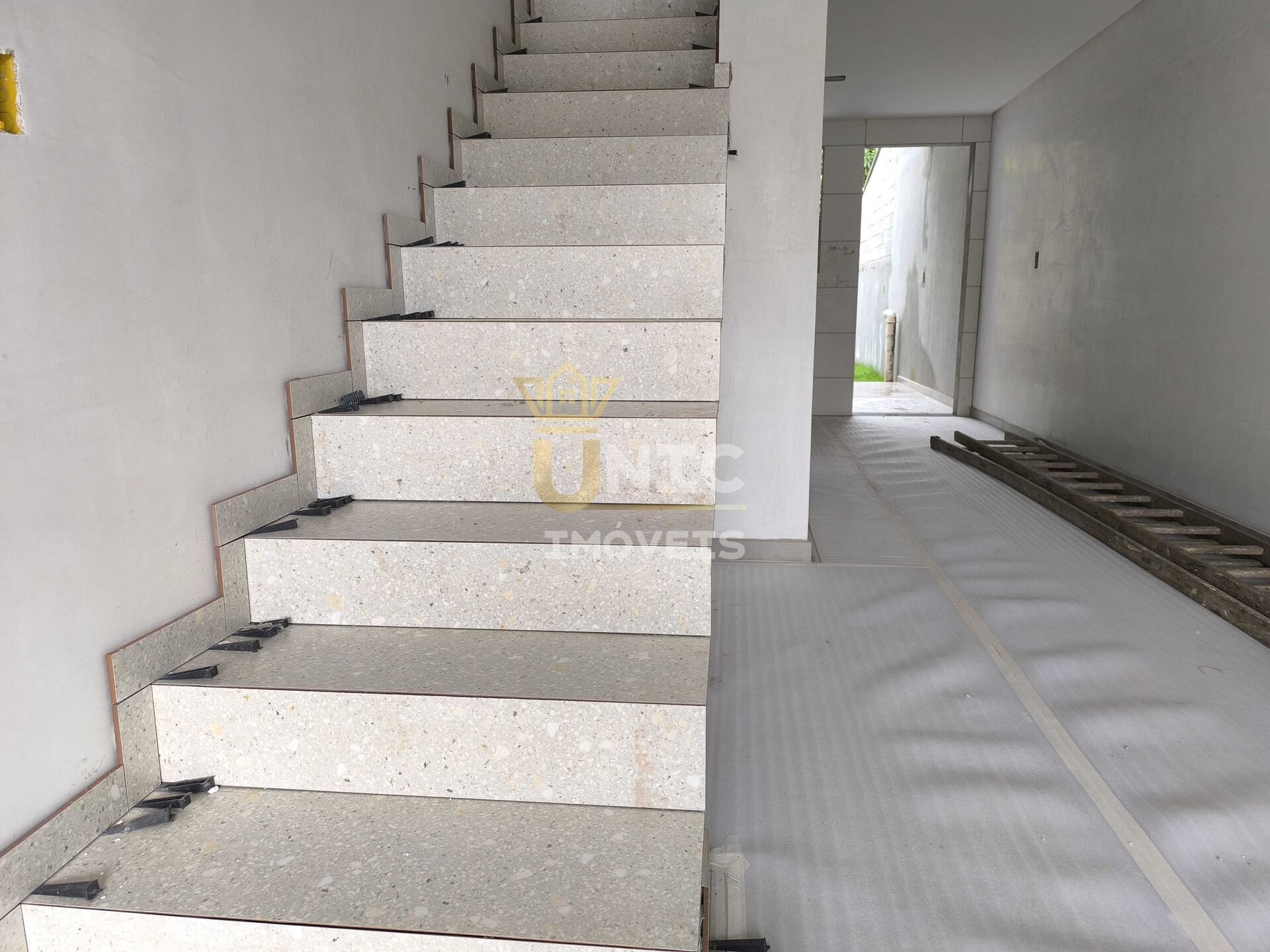 Excelente acabamento em porcelanato retificado, rebaixo em gesso, corrimão de inox, portas brancas, nicho no banheiro, e paver drenante na garagens.